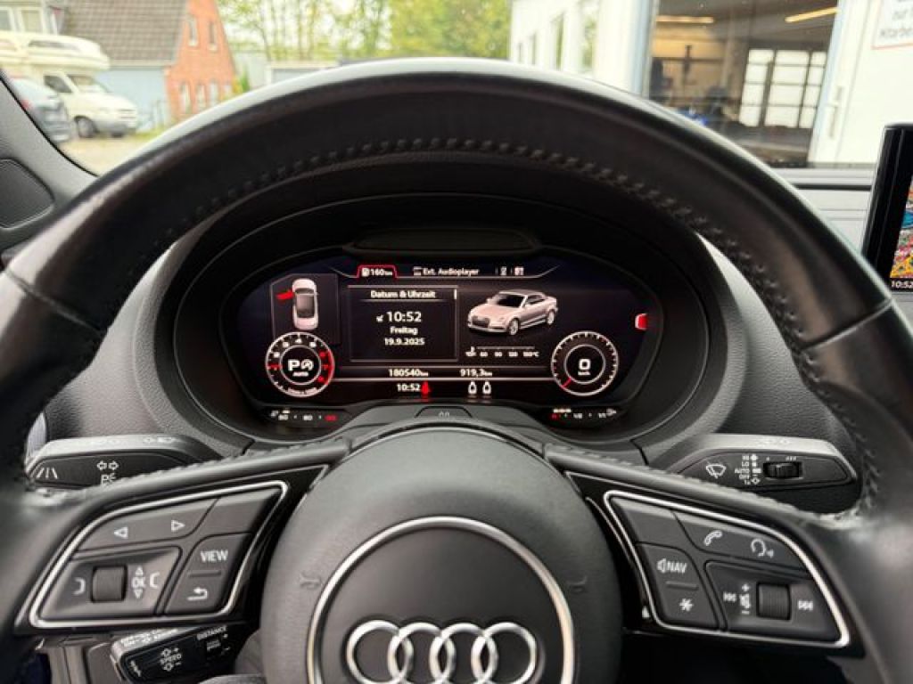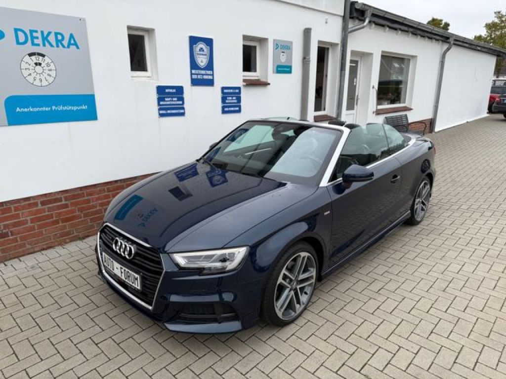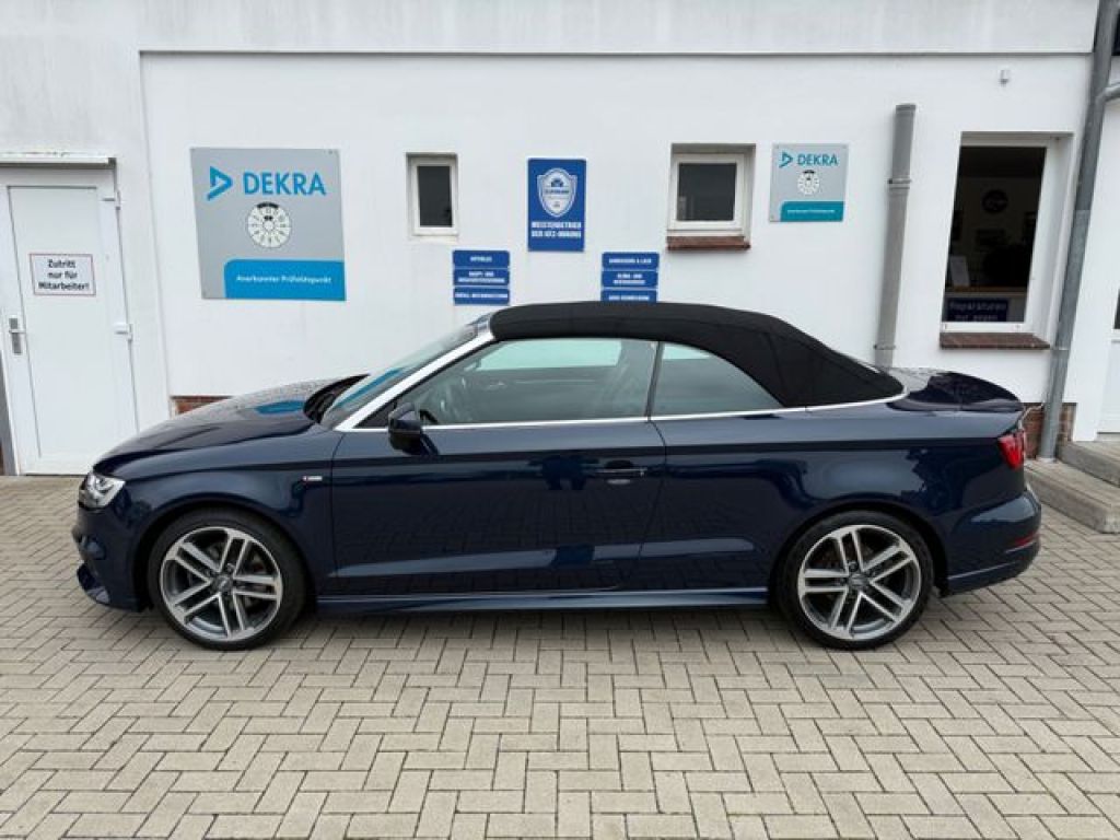 Erleben Sie sportlichen Fahrspaß mit diesem gepflegten Audi A3 Cabrio aus 2017. Das Fahrzeug überzeugt durch sein blaues Metallic-Lackierung und schwarzes Lederinterieur. Mit nur einem Vorbesitzer und lückenloser Servicehistorie präsentiert sich dieser A3 in hervorragendem Zustand. Der 190 PS starke Benzinmotor mit Automatikgetriebe und Allradantrieb sorgt für dynamische Fahrleistungen bei gleichzeitiger Effizienz (Euro 6 Norm).
