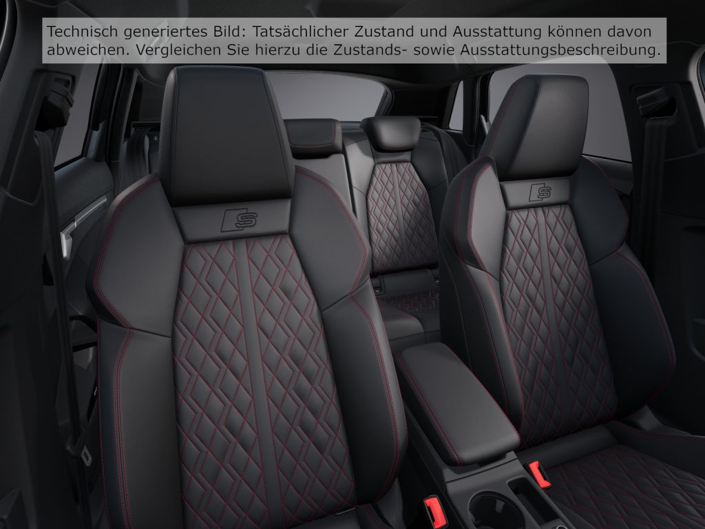 Getriebe 7-Gang-Automatikgetriebe quattro Technik und Sicherheit Rückfahrkamera Rear View Spurverlassenswarnung inkl. Notfallassistent Matrix LED-Scheinwerfer Audi drive select HD Matrix LED-Scheinwerfer, LED-Heckleuchten und Scheinwerfer-Reinigungsanlage Matrix LED-Scheinwerfer mit dynamischer Lichtinszenierung und dynamischem Blinklicht Licht- u. Regensensor Tagesfahrlicht Audi connect Notruf Service mit Audi connect Remote Control kamerabasierte Verkehrszeichenerkennung Adaptiver Geschwindigkeitsassistent Anfahrassistent Komfortöffnung Gepäckraumklappe Komfortschlüssel (ohne Safelock) LED-Heckleuchten mit dynamischem Blinklicht Reifendruck-Kontrollanzeige ESP und elektronischer Bremskraftverstärker Einparkhilfe vorn und hinten Start/Stop-Anlage Seitenairbags vorn mit Kopfairbagsystem und Interaktionsairbag vorn Progressivlenkung Abbiegeassistent Ablenkungs- und Müdigkeitserkennung Airbags vorn, Beifahrerairbag deaktivierbar Assistenzpaket 2 Assistenzpaket Fahren und Parken plus Assistenzpaket Schutz- und Warnsysteme Ausweichassistent Geschwindigkeitsbegrenzungsanlage Kindersicherung, elektrisch betätigt Klimatisierungspaket plus Komfortpaket 2 Notbremsassistent vorn Parklenkassistent Scheibenbremsen vorn, 18 Zoll, Bremssättel rot lackiert, S-Schriftzug (ECE) Scheinwerferreinigungsanlage Speedlimiter / Geschwindigkeitsbegrenzer Infotainment und Multimedia MMI Navigation plus mit MMI touch Audi connect Navigation Infotainment plus Audi Virtual Cockpit Plus Infotainment-Paket Audi phone box light Vorbereitung für functions on demand MMI Radio Plus SONOS Premium Soundsystem Digitaler Radioempfang USB-Schnittstelle im Fond Audi Application Store und Smartphone-Interface MMI experience plus Innenausstattung Komfortklimaautomatik 3-Zonen Einstiegsleisten mit Aluminiumeinlegern vorne, beleuchtet, mit S-Schriftzug Innenspiegel automatisch abblendend, rahmenlos Pedalerie in Edelstahloptik Sportkontur-Lederlenkrad im 3-Speichen-Design mit Multifunktion plus unten abgeflacht Ambiente-Lichtpaket pro Dachhimmel in schwarz Sitze Sportsitze Interieur S mit Sportsitzen, Leder schwarz/rot Kindersitzbefestigung ISOFIX und Top Tether für die äußeren Fondsitze Sitzheizung vorn Mittelarmlehne vorn 4-Wege-Lendenwirbelstütze Vordersitze manuell einstellbar Armauflage Kunstleder Leder Feinnappa mit Rautensteppung und S-Prägung Rücksitz geteilt / klappbar Außenausstattung Außenspiegel elektrisch einstell-, beheiz- und anklappbar, beidseitig automatisch abblendend Außenspiegelgehäuse in schwarz Komfort-Paket Plus Optikpaket schwarz plus S-Dachkantenspoiler Einstiegs-LED mit S-Logoprojektion vorn Performance-Abgasanlage, Endschalldämpfer Titan Sonnenschutzverglasung abgedunkelt Sportback Wärmeschutz- und Akustikverglasung Frontscheibe mit grauem Colorstreifen Räder und Reifen LM-Felge 19 Zoll S-DESIGN Reifen-Reparaturkit Sonstiges Ablagen-Paket S Sportfahrwerk OHNE Spurwechselassistent / Side Assist Sport-Ausstattung Wegfahrsperre Angaben zum Hersteller: AUDI AG, Audi