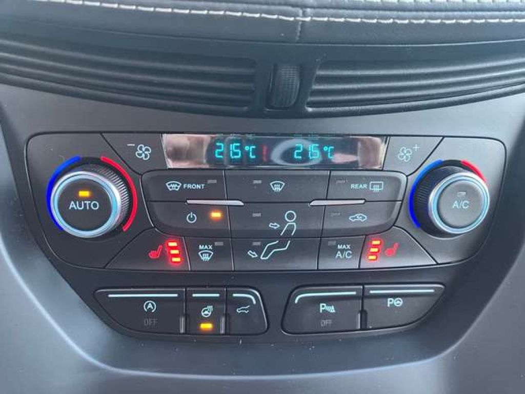 Bereifung: 4 Ganzjahresreifen 235/50 R 18 Geschwindigkeitsregelanlage, adaptiv (ACC - Adaptive Cruise Control) mit Auffahrwarnsystem (FA- Forward Alert) Lackierung: Magnetic-Grau Metallic Lenkrad, beheizbar Paket: Vignale Chrom-Paket - Unterfahrschutz vorn, in Chrom-Dekor - Unterfahrschutz hinten, silberfarben Radiozubehör: Digitaler Radioempfang DAB/DAB+ (Digital Audio Brodcasting) Radiozubehör: Premium-Sound-System - 10 Sony Premium-Lautsprecher inkl. Subwoofer Seitenscheiben ab 2. Sitzreihe und Heckscheibe, dunkel getönt Active City Stop inkl. Frontscheibe, beheizbar Dachreling, silberfarben Frontscheibe beheizbar AHK abnehmbar Multifunktionale Xenon-Scheinwerfer Vignale Body Styling-Kit Radiozubehör: Sony-Lautsprechern Rückfahrkamera Paket: Ford Key Free-Paket Navigationssystem Ford Navigationssystem Klimaanlage mit automatischer Temperat. Getriebe: 6-Gang-Automatik FordKeyFree-System Einpark-Assistent (Active Park Assist) Räder: LM 7,5J x 18 m.235/50 R 18 10-Sp. ABS inkl. EBD Ambientebeleuchtung vorn, Multicolor-LED Anhängevorrichtungs-Vorbereitungs-Set Außenspiegel elektrisch anklappbar Außenspiegel verstellb. u. beh.(2) Bereifung: Reifen-Repatur-Set Berganfahrassistent Bordcomputer Bremsleuchte, dritte Dachkonsole mit Brillenablagefach Einstiegszierleisten vorn Elektronisches Stabilitätsprogramm (ESP) Fensterheber vorn und hinten, elektrisch FordPower-Startfunktion Fußraumbeleuchtung vorn Gepäckraumabdeckung und -beleuchtung Geschwindigkeitsregelanlage Grundausstattung (Kuga) Heckscheibenwischer Intelligentes Sicherheits-System (IPS) Kopfstützen vorne und hinten (5) höhenv. Lederlenkrad, 3-Speichen-Design Lenksäule, in Höhe- und Reichweite einst Leselampen LED vorn und hinten Make-up Spiegel beleuchtet Mittelkonsole vorn mit Armauflage MyKey-Schlüsselsystem Nebelscheinwerfer Ottopartikelfilter Paket: Sicht Pollen- und Staubfilter Reifendruckkontrollsystem Rücksitzbank u.Lehne asym.get.umklappbar Scheibenwischer mit Regensensor Servolenkung Sicherheits-Bremsassistent (EBA) Sitz: Exklusive Lederausstattung Sportsitze vorn Start-Stopp-System Teppichfußmatten ""Premium"" Wegfahrsperre Zentralverriegelung m. Fernb.