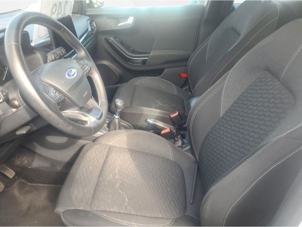 Ambiente-Beleuchtung vorn (LED), Antischlupfregelung (ASR), Audio-Navigationssystem Ford mit AppLink, Außenspiegel elektr. verstell- und heizbar, Blinkleuchte in Außenspiegel integriert, Body-Styling-Paket, Bordcomputer, Dachhimmel Stoff, Eco-Anzeige für verbrauchsoptimiertes Fahren (EcoCoach), Einparkhilfe hinten, Fahrassistenz-System: Berganfahr-Assistent (Hill-Holder), Fahrassistenz-System: Falschfahrer-Warnfunktion, Fahrassistenz-System: Fernlichtassistent (Scheinwerfer mit Abblendautomatik), Fahrassistenz-System: Notbrems-Assistent, Fahrassistenz-System: Post-Collision-System, Fahrassistenz-System: Pre-Collision-System, Fahrassistenz-System: Spurhalteassistent mit Müdigkeitserkennungs-Sensor, Fahrassistenz-System: Verkehrsschildassistent, Fensterheber elektrisch vorn + hinten mit Komfortschließung, FordPass Connect inkl. eCall, Fußmatten Teppich, Getriebe 6-Gang - Typ: 6MX65, Heckleuchten LED, Innenraumfilter: Staub- und Pollenfilter, Intelligent Protection System (IPS), Intelligenter Geschwindigkeits-Begrenzer, Isofix-Aufnahmen für Kindersitz, Karosserie: 5-türig, Kopfstützen hinten mechan. verstellbar (3 Stück), Laderaumboden variabel (Ford Megabox), Lendenwirbelstütze Sitz vorn links, Lenksäule (Lenkrad) höhen-/längsverstellbar, LM-Felgen, Mild-Hybrid 92 kW (Motor 1,0 Ltr. - 92 kW EcoBoost), My Key (2. Fahrzeugschlüssel programmierbar), Nebelscheinwerfer LED, Otto-Partikelfilter (OPF), Radstand 2588 mm, Reifen-Reparaturkit, Reifendruck-Kontrollsystem, Rücksitzlehne geteilt/klappbar (60:40), Schadstoffarm nach Abgasnorm Euro 6d-TEMP, Scheinwerfer LED, Scheinwerfer-Assistent mit Tag-/Nachtsensor, Sitze vorn höhenverstellbar, Sonnenblende links mit Spiegel (beleuchtet), Sonnenblende rechts mit Spiegel (beleuchtet), Sportsitze vorn, Standard Variante, Start/Stop-Anlage, Türgriffe außen Wagenfarbe