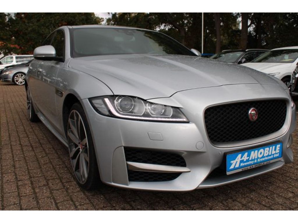 Airbag Fahrer-/Beifahrerseite, Ambiente Interieurbeleuchtung, Antriebsart: Heckantrieb, Armaturentafel Oberteil in Luxtec, Audio Interface (Universal-Schnittstelle für iPod / AUX / USB / MP3), Außenspiegel Wagenfarbe, Bi-Xenon-Scheinwerfer, Bluetooth Audio-Streaming, Bluetooth-Schnittstelle, Bremsassistent, Bremsbelagverschleissanzeige, Bremssättel Grau-Metallic lackiert (mit Jaguar Schriftzug), Brillenfach in Dachhimmel / Dachkonsole integriert, Dachhimmel Morzine in Jet, Dachreling schwarz, Einparkhilfe vorn und hinten, Einschaltautomatik für Fahrlicht / Lichtsensor, Elektron. Traktionskontrolle, Fahrassistenz-System: Antriebsmomentkontrolle (Torque Vectoring), Fahrassistenz-System: Aufmerksamkeits-Assistent, Fahrassistenz-System: Autonomer Notbrems-Assistent (AEB), Fahrassistenz-System: Berganfahrhilfe (Hill-Holder), Fahrassistenz-System: Spurhalteassistent, Fensterheber elektrisch vorn + hinten, Frontscheibe wärmedämmend, Fußgänger-Schutzsystem (Aktive Motorhaube PDBS), Fußmatten, Geschwindigkeits-Regelanlage geländeabhängig (All Surface Progress Control, ASPC), Getränkehalter vorn, Heckleuchten LED, Heckscheibe heizbar, Heckspoiler Wagenfarbe, InControl Touch Pro Infotainment-System (10 Zoll Farbdisplay), Innenausstattung: Dekoreinlagen Piano Black, Isofix-Aufnahmen für Kindersitz im Fond, Karosserie: 4-türig, Kindersicherung elektrisch, Klimaautomatik 2-Zonen, Kopf-Airbag-System (Windowbag), Kopfstütze hinten mitte, Kühlergrill schwarz mit Chromeinfassung, matt, Ladekantenschutz (verchromt), Lenkrad (Sport/Leder - Emblem), Lenksäule (Lenkrad) mechan. verstellbar, Lichtassistent (Coming Home, Leaving Home), Luftauslass Blende seitlich, R-Sport Chrom, Lufteinlassblende Chrom, Mittelarmlehne hinten mit Getränkehalter, Mittelarmlehne vorn mit Ablagefach, Motor 2,0 Ltr. - 177 kW Diesel KAT, Niveauregulierung, Parkbremse elektronisch (EPB), Reifen-Reparaturset, Reifendruck-Kontrollsystem, Schadstoffarm nach Abgasnorm Euro 6, Scheibenrahmen schwarz, Seitenairbag vorn, Sitzverstellung vorn elektr. (10/10-Wege links/rechts), Sonderlackierung Ebony Black, SOS-Notruffunktion für Lokalisierung Fahrzeug (InControl Protect), Sport-Fahrwerk, Steckdose (12V-Anschluß) im Koffer-/Laderaum, Stop-Start-Anlage, Touch-Pro-Paket, Verglasung getönt, Verzurrösen Koffer-/Laderaum