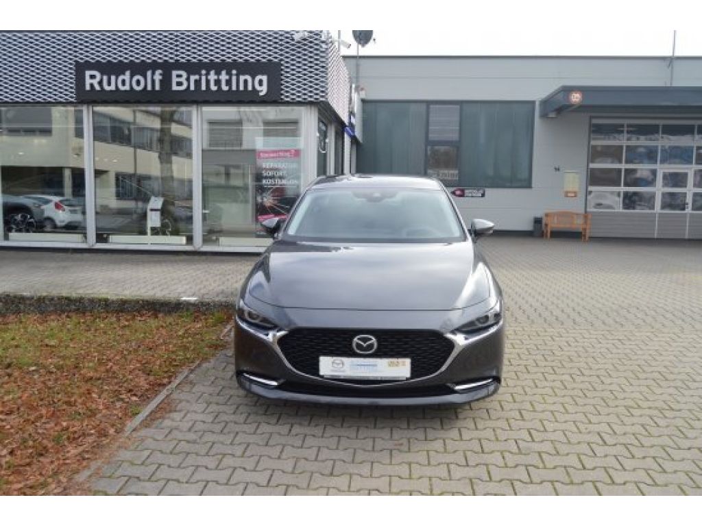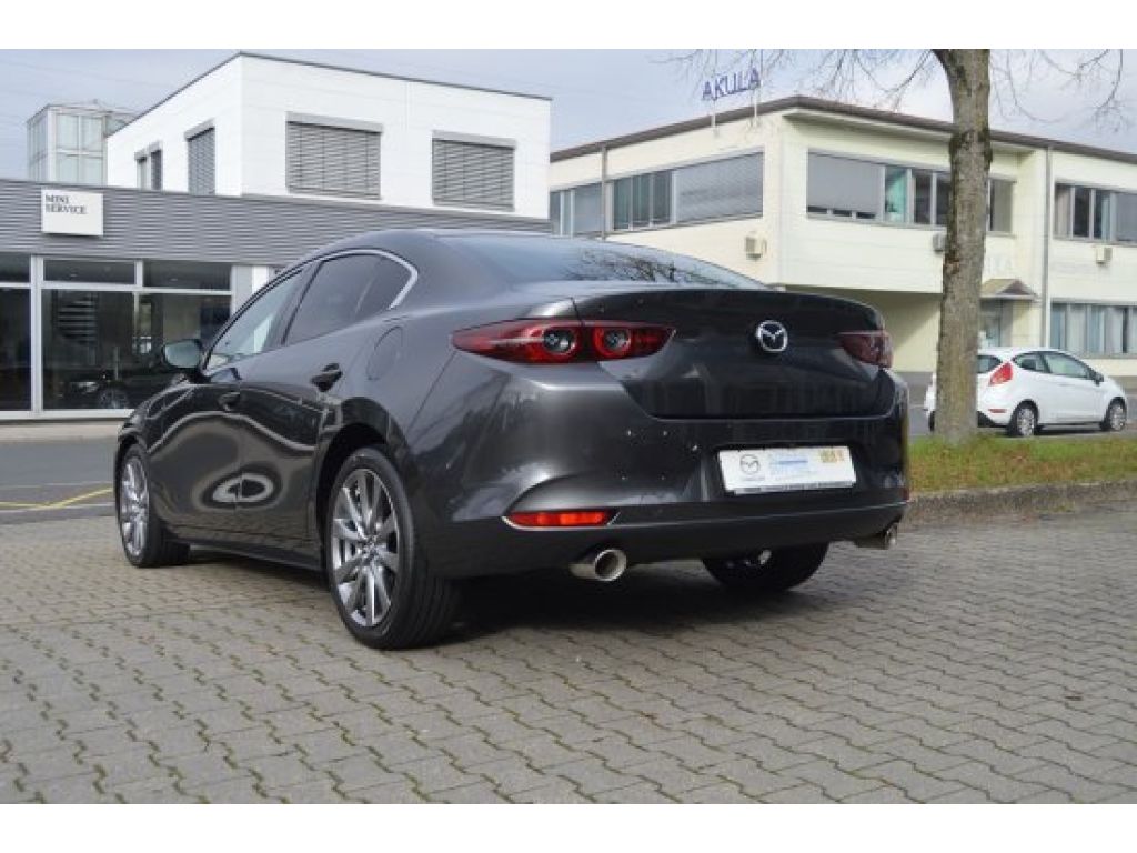 Mazda 3 Fastback 4-Türer Skyactiv-X 2.0 Mild Hybrid 180PS 6-Gang-Automatikgetriebe Selection mit Bose-Soundsystem, Navigationssystem, Design und i-Activsense-Paket in Machine Grey Metallic.
