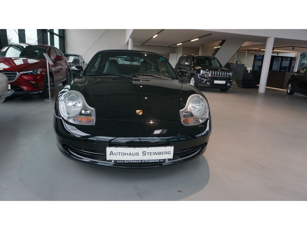 Dieser gepflegte Porsche 996 Cabrio aus dem Jahr 2000 präsentiert sich in elegantem Schwarz-Metallic mit schwarzer Lederausstattung. Der 3,4-Liter-Sechszylinder-Motor leistet beeindruckende 300 PS und überträgt seine Kraft über ein Automatikgetriebe auf alle vier Räder. Das Fahrzeug verfügt über eine umfangreiche Ausstattung, darunter Bi-Xenon-Scheinwerfer mit Reinigungsanlage, Automatik-Klimaanlage und ein Navigationssystem. Der Innenraum bietet höchsten Komfort mit elektrisch verstellbaren Sitzen mit Memory-Funktion, Sitzheizung und einem Multifunktionslenkrad aus Leder. Für zusätzliche Sicherheit sorgen Front- und Seitenairbags, ABS und Traktionskontrolle. Das Fahrzeug ist scheckheftgepflegt, unfallfrei und wurde von einem Nichtraucher gefahren. Die grüne Umweltplakette und die frische HU/AU runden das Angebot ab.