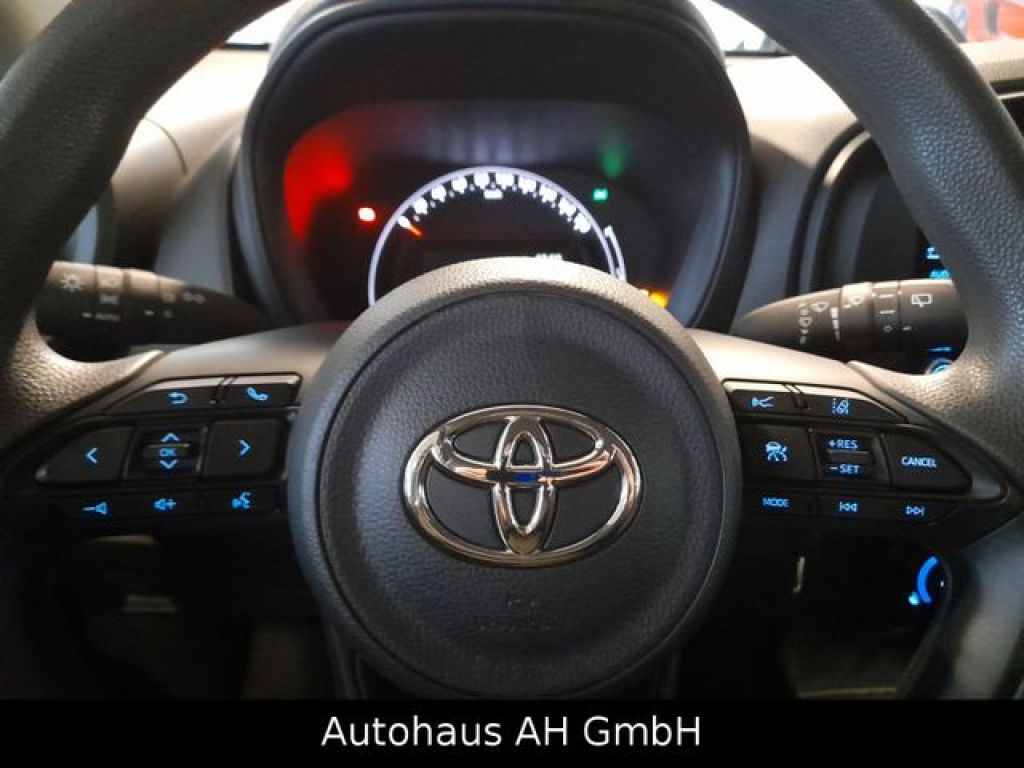 3. Bremsleuchte, Airbag Fahrer-/Beifahrerseite, Audiobedienung am Lenkrad, Autom. Begleitfunktion der Beleuchtung (Follow me home, FMH), Außenspiegel elektr. verstell- und heizbar, Fahrassistenz-System: Fernlichtassistent (Abblendautomatik Fahrlicht, AHB), Fahrassistenz-System: Sicherheitssystem Toyota Connect mit automatischem Notruf (eCall), Gepäckraumabdeckung / Rollo, Innenraumfilter: Staub- und Pollenfilter mit Aktivkohlefilter, Isofix-Kindersitz-System, Karosserie: 5-türig, Kindersicherung, Kopf-Airbag-System, Kopfstützen hinten, Lenkrad (3-Speichen), Lenksäule (Lenkrad) höhenverstellbar, Motor 1,0 Ltr. - 53 kW KAT, Reifen-Reparaturkit, Reifendruck-Kontrollsystem, Rücksitz klappbar, Schadstoffarm nach Abgasnorm Euro 6d, Seitenairbag vorn, Sitz vorn links höhenverstellbar, Sonnenblende rechts mit Make-up-Spiegel, Stop&Go-System (TSGS), Stoßfänger Wagenfarbe, Toyota Safety Sense, Warnanlage für Sicherheitsgurte hinten, Warnanlage für Sicherheitsgurte vorn